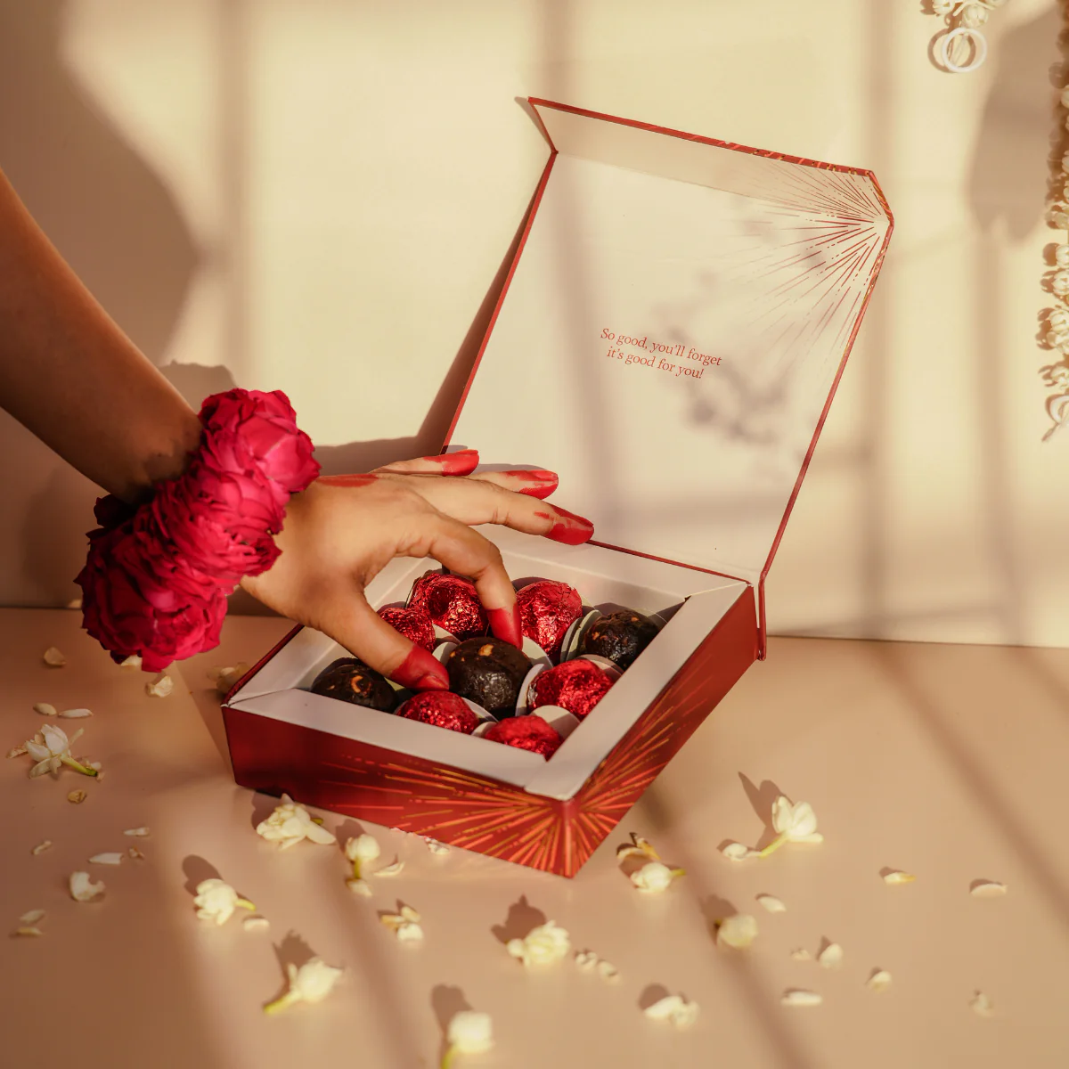 For true chocolate lovers. Bittersweet dark chocolate meets crunchy and caramely hazelnut praline this Cacao, Hazelnut & Date Fudge starts smooth, turns nutty, then melts away